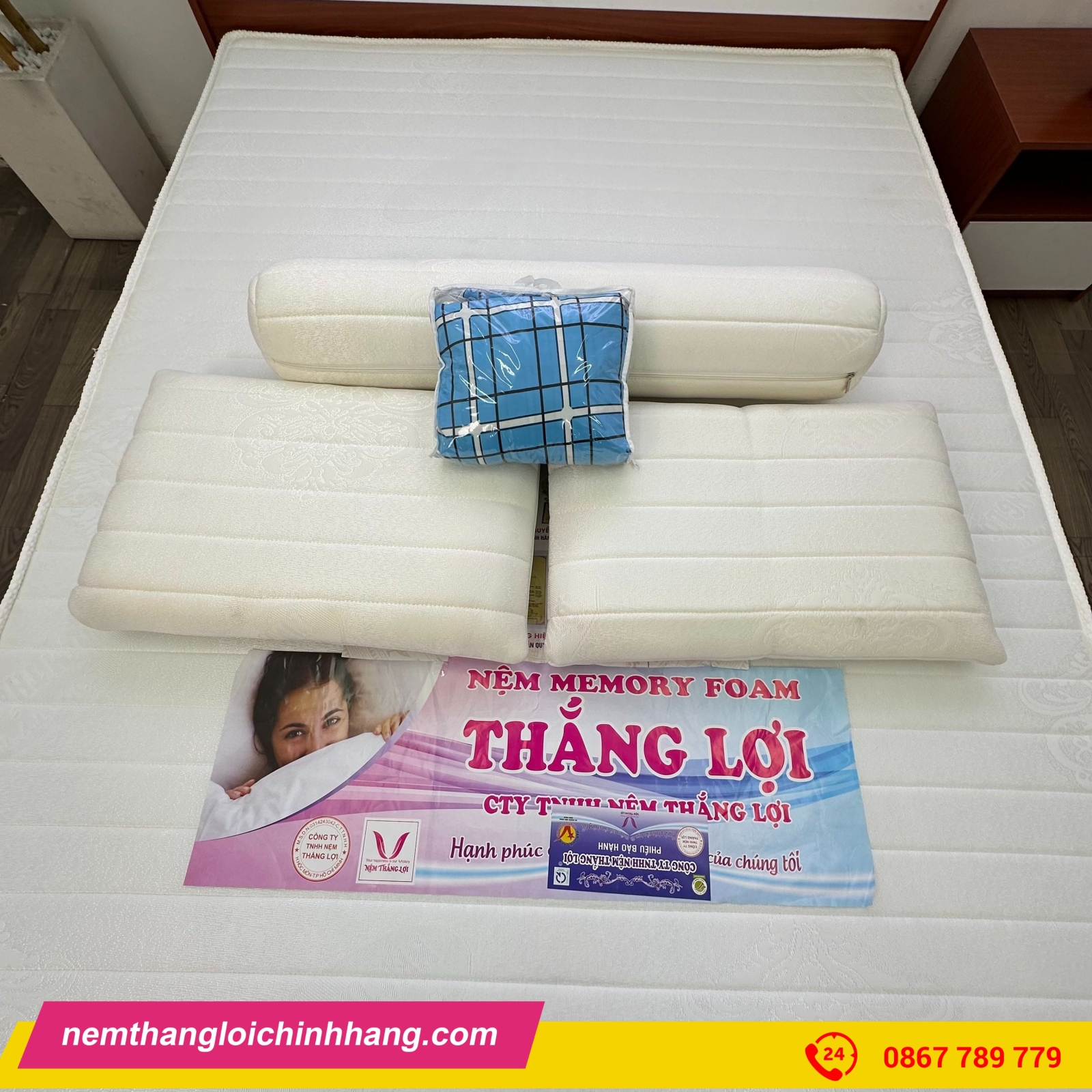 BỘ GỐI CAO SU FOAM THẮNG LỢI ( 2 NẰM + 1 ÔM)